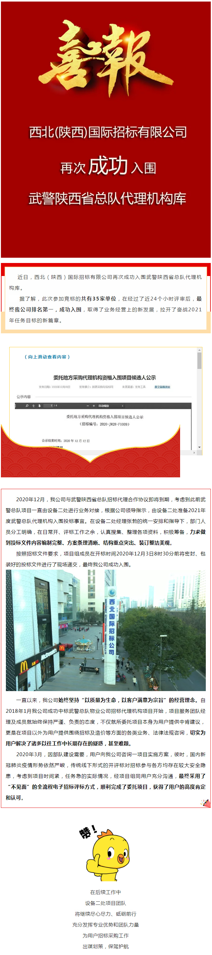 喜報!我公司再次成功入圍武警陜西省總隊代理機構(gòu)庫
