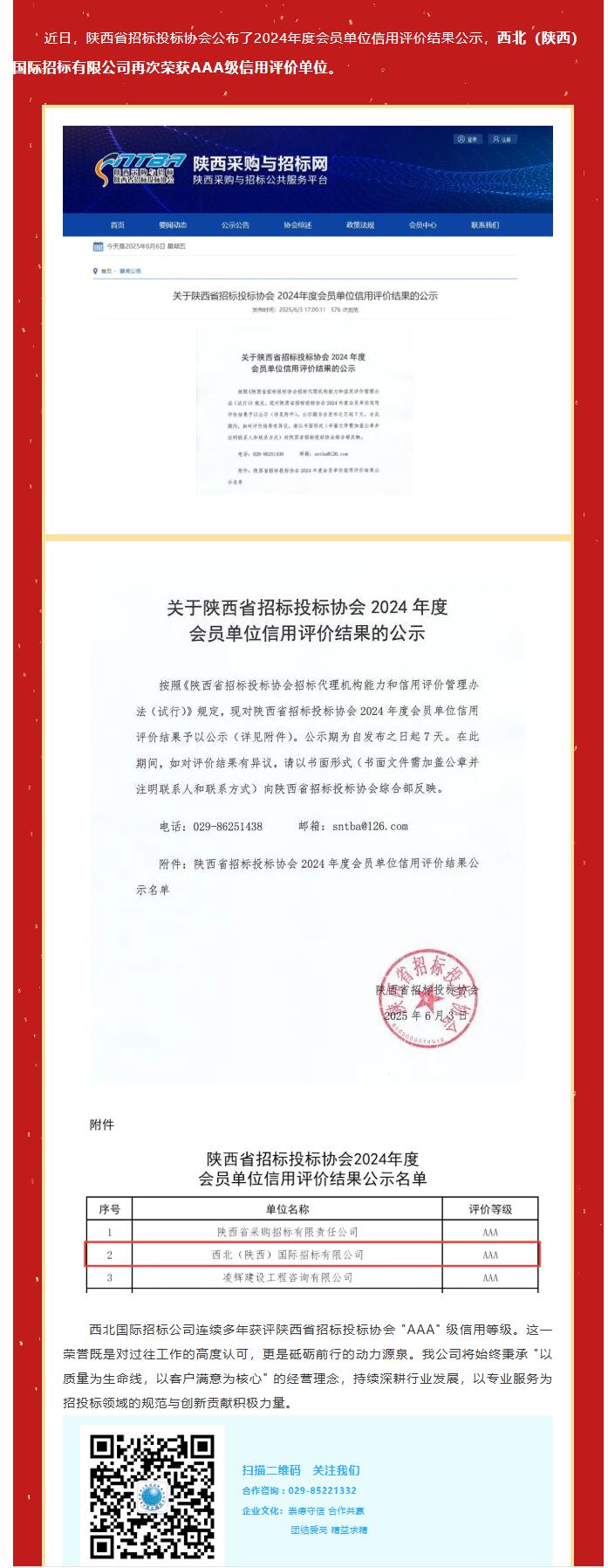 喜報--我公司再次獲陜西省招標投標協(xié)會AAA級企業(yè)信用評價單位