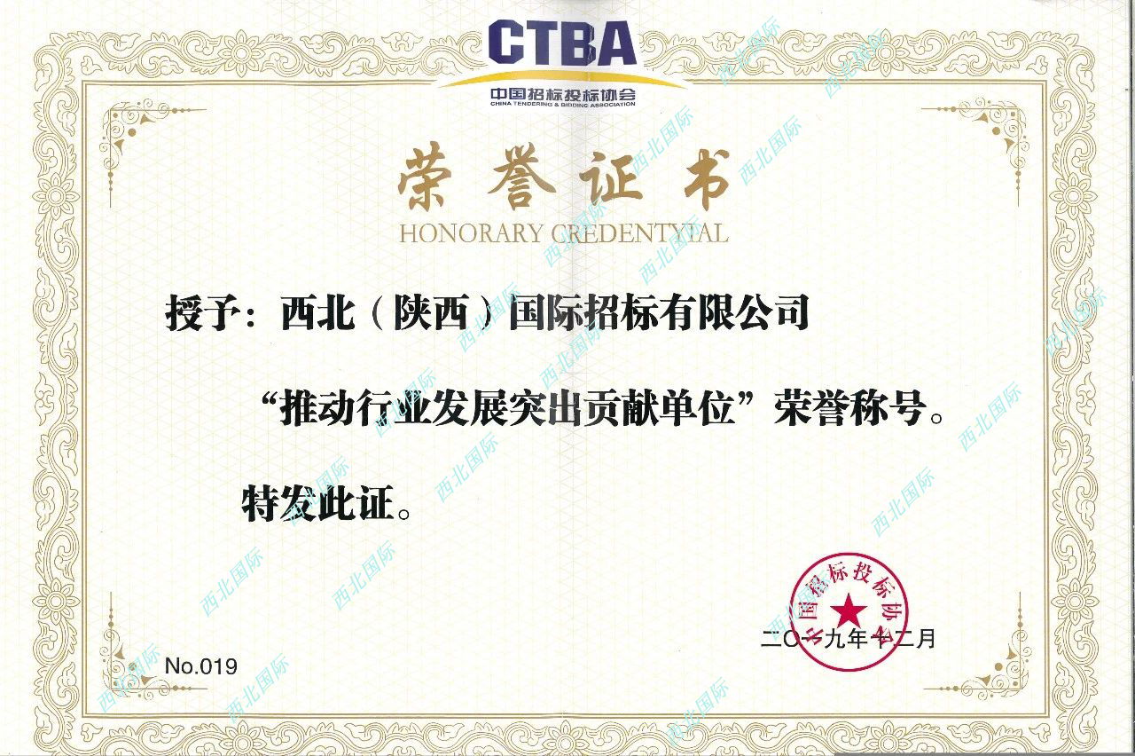 我公司獲中國招標(biāo)投標(biāo)協(xié)會“推動行業(yè)發(fā)展突出貢獻單位”榮譽稱號