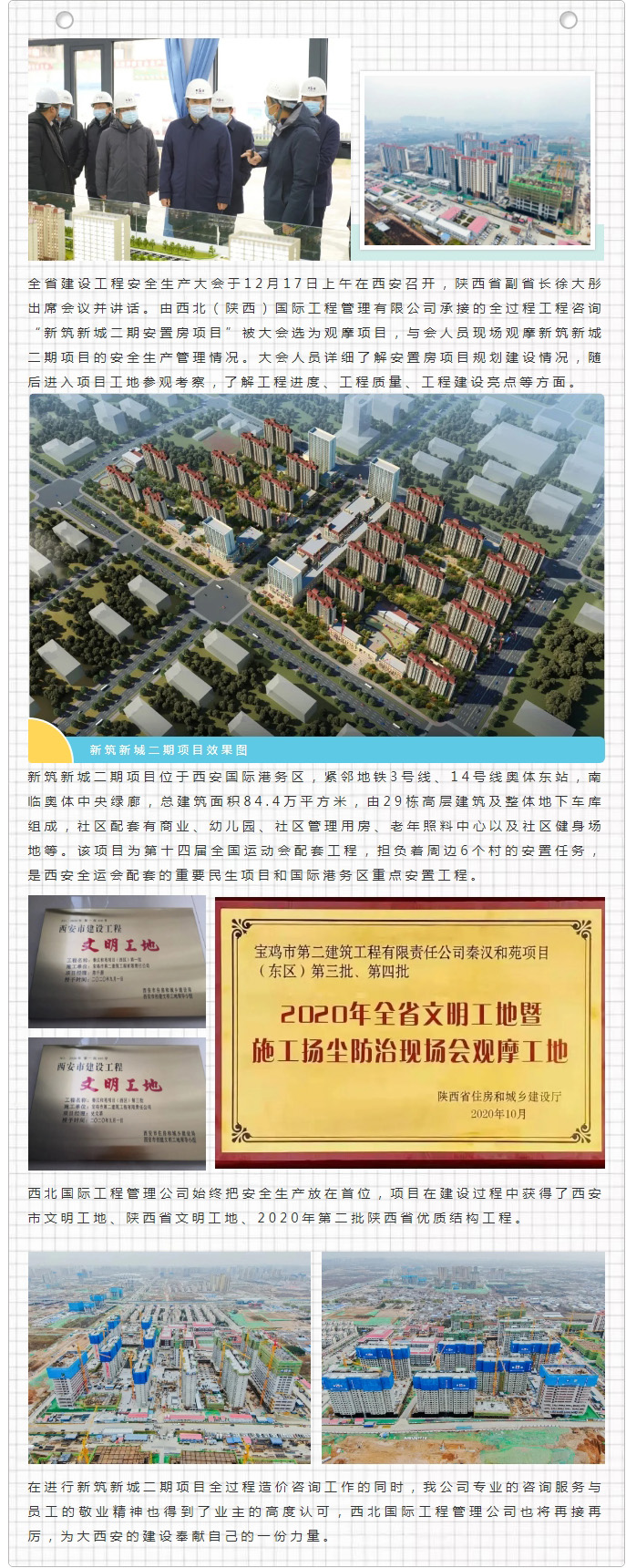 我公司承接全過程工程咨詢“新筑新城二期安置房項目”被全省建設工程安全生產(chǎn)大會選為觀摩項目,陜西省副省長徐大彤蒞臨參觀考察
