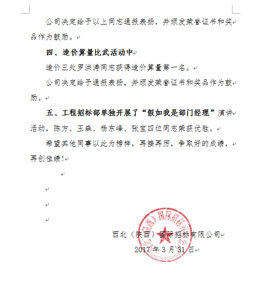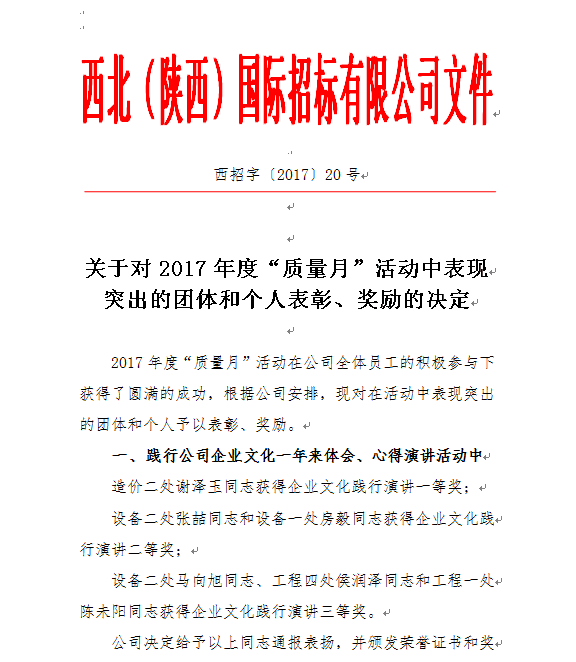 2017年度質(zhì)量月活動(dòng),公司集中開(kāi)展了:“ISO9001新版宣貫”、“政府采購(gòu)相關(guān)政策和法規(guī)的宣講”、“審計(jì)工作的培訓(xùn)”、“新員工入職系列培訓(xùn)”、“造價(jià)制度宣貫”;“政府采購(gòu)政策考試”、“案例分析”、“造價(jià)算量比武”、 “模擬開(kāi)標(biāo)技術(shù)比武”; “假如我是部門(mén)經(jīng)理”、“踐行公司企業(yè)文化一年來(lái)體會(huì)、心得演講”等一系列活動(dòng)。