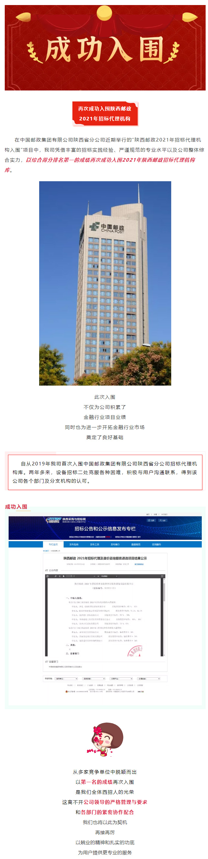 我公司再次成功入圍2021年陜西郵政招標(biāo)代理機(jī)構(gòu)庫