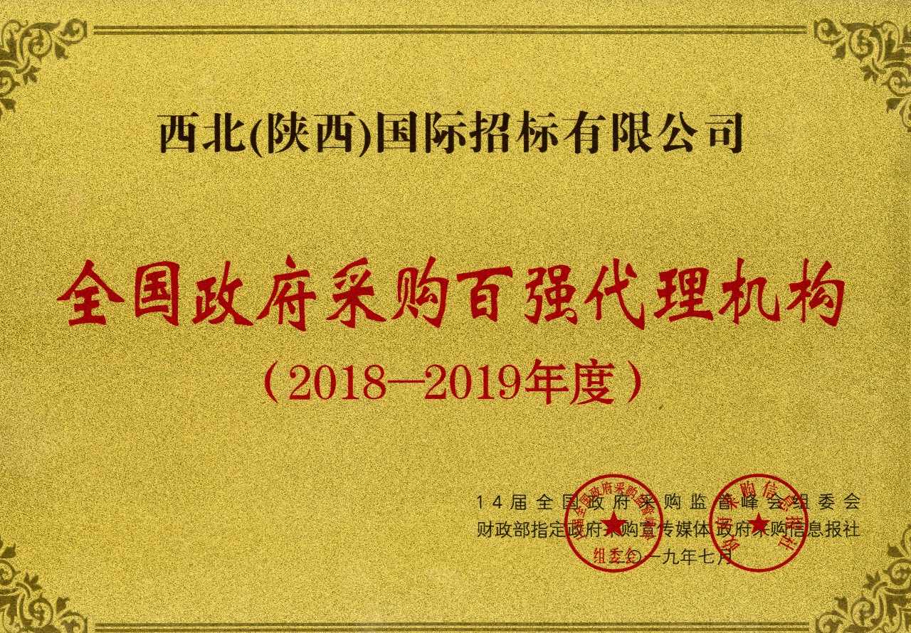 熱烈祝賀西北(陜西)國際招標有限公司榮獲“全國政府采購百強代理機構(gòu)”稱號