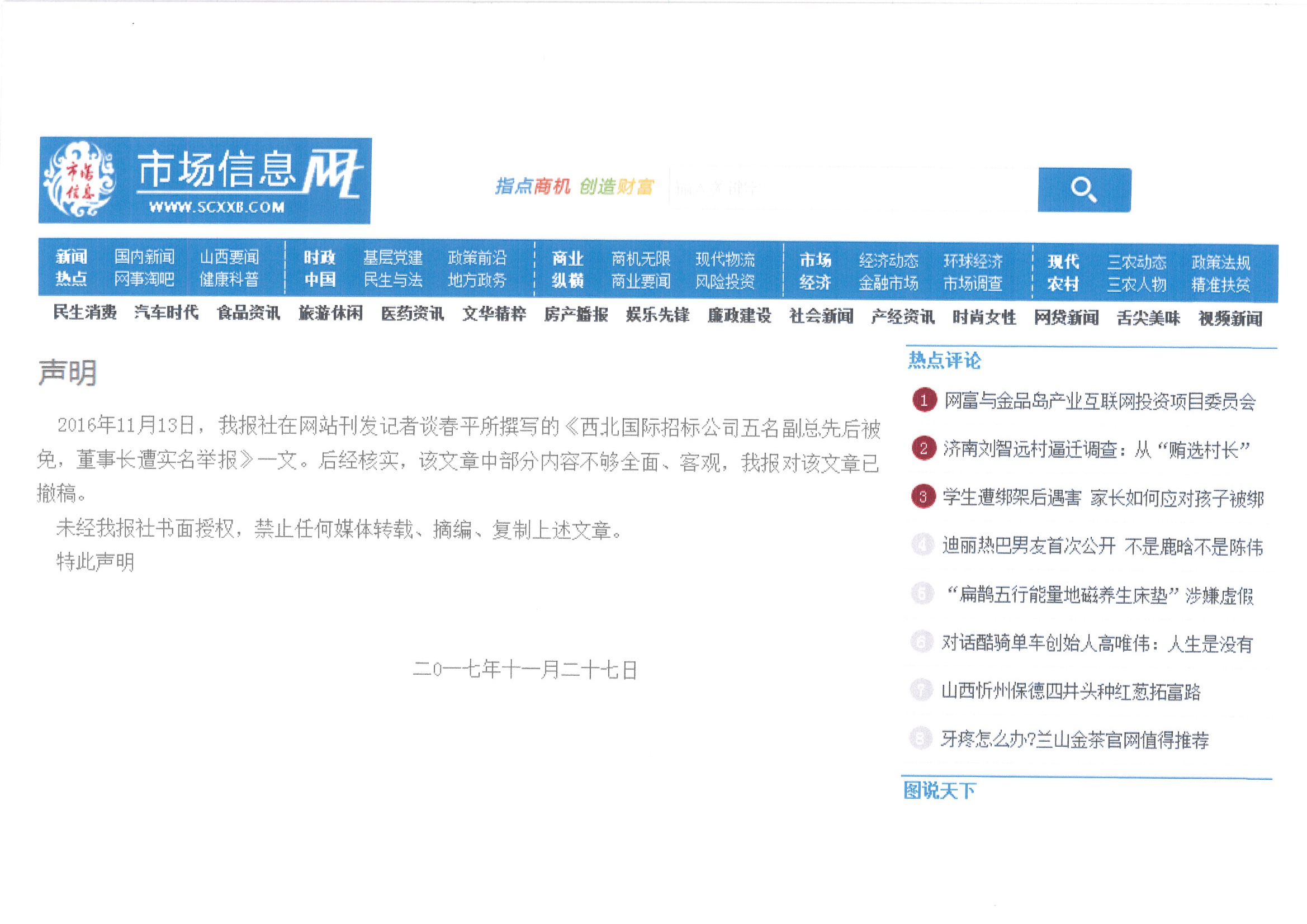 關于《市場信息報》不實報道裁決結果的特別告知