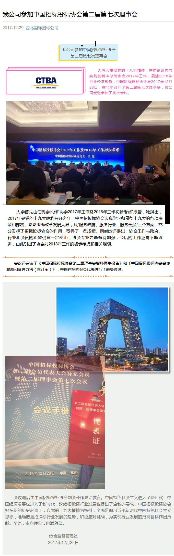 我公司參加中國招標(biāo)投標(biāo)協(xié)會(huì)第二屆第七次理事會(huì)
