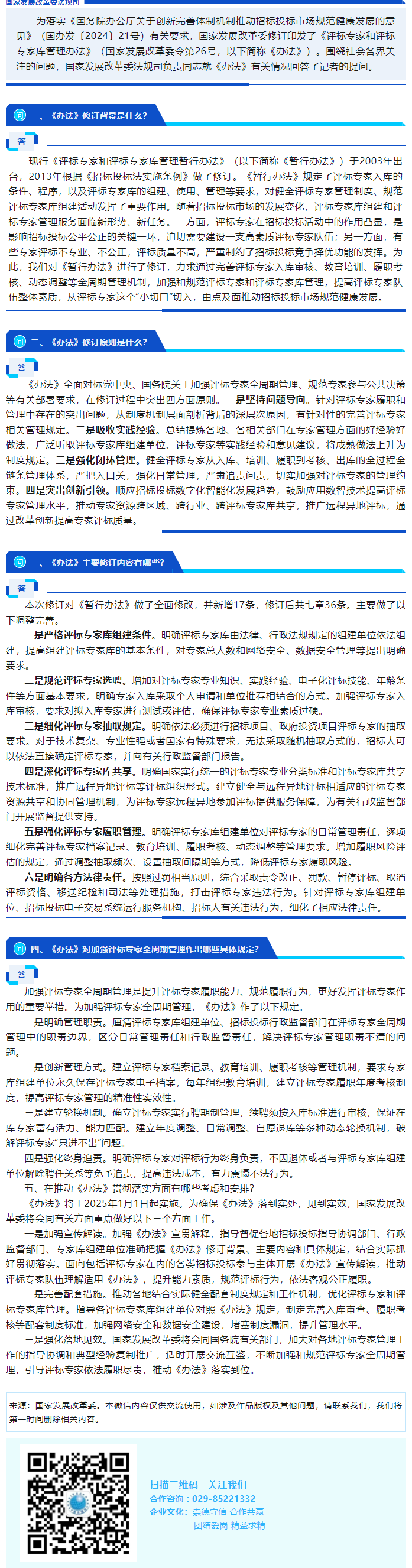 國家發改委發布《評標專家和評標專家庫管理辦法》2024年第26號令